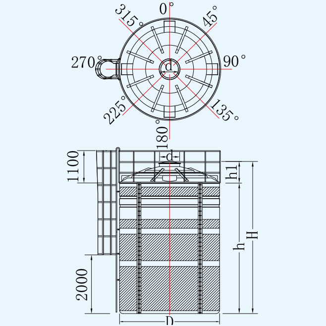 | 名稱 | 型 號 | 容量L | 桶體D | 人孔d | 垂高h(yuǎn) | 總高H |